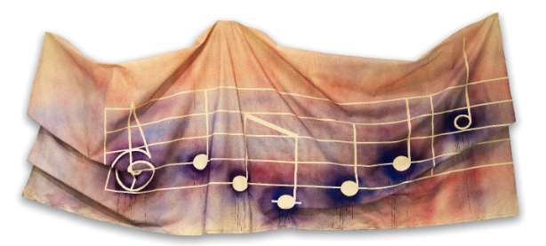 Nina Yankowitz (American, b. 1946). Oh Say Can You See – A Draped Sound Painting, 1967-68, latex paint on cotton duck, audio by Phil Harmonic a.k.a. Ken Werner – to be played on floor speaker, 48 x 120 x 6 in. Courtesy of Artist.